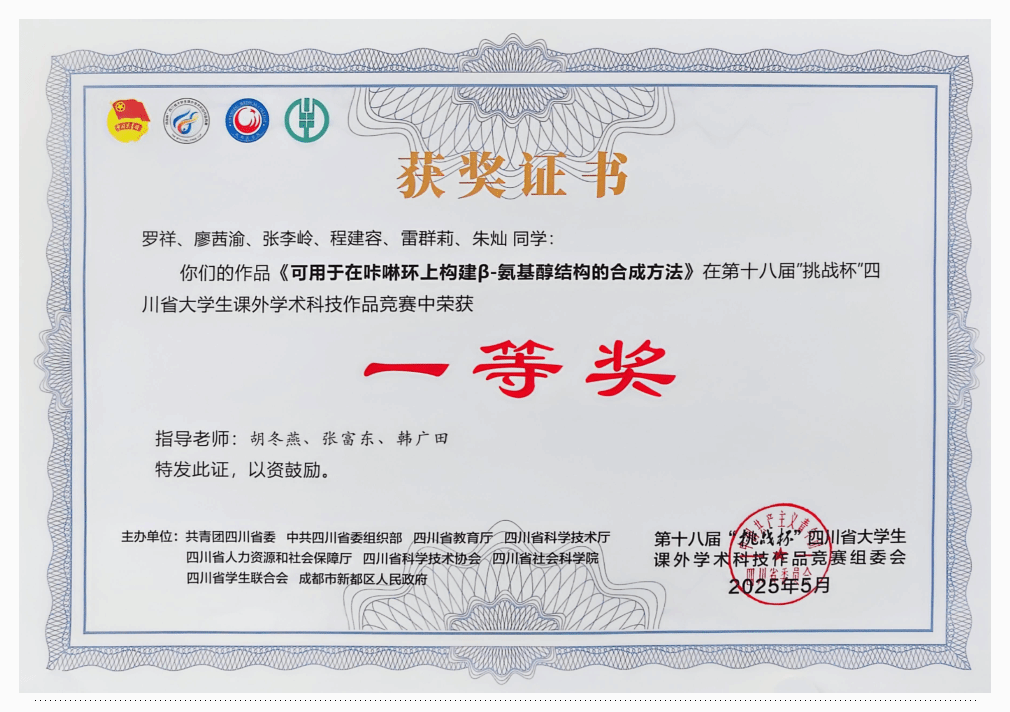 5月24日—5月26日由共青团四川省委、中共四川省委组织部、四川省教育厅、四川省科学技术厅、四川省人力资源和社会保障厅、四川省科学技术协会、四川省社会科学院、四川省学生联合会、成都市新都区人民政府主办的第十八届“挑战杯”四川省大学生课外学术科技作品竞赛在成都医学院举办。我校在本次竞赛中荣获一等奖1项、二等奖2项、三等奖8项。
