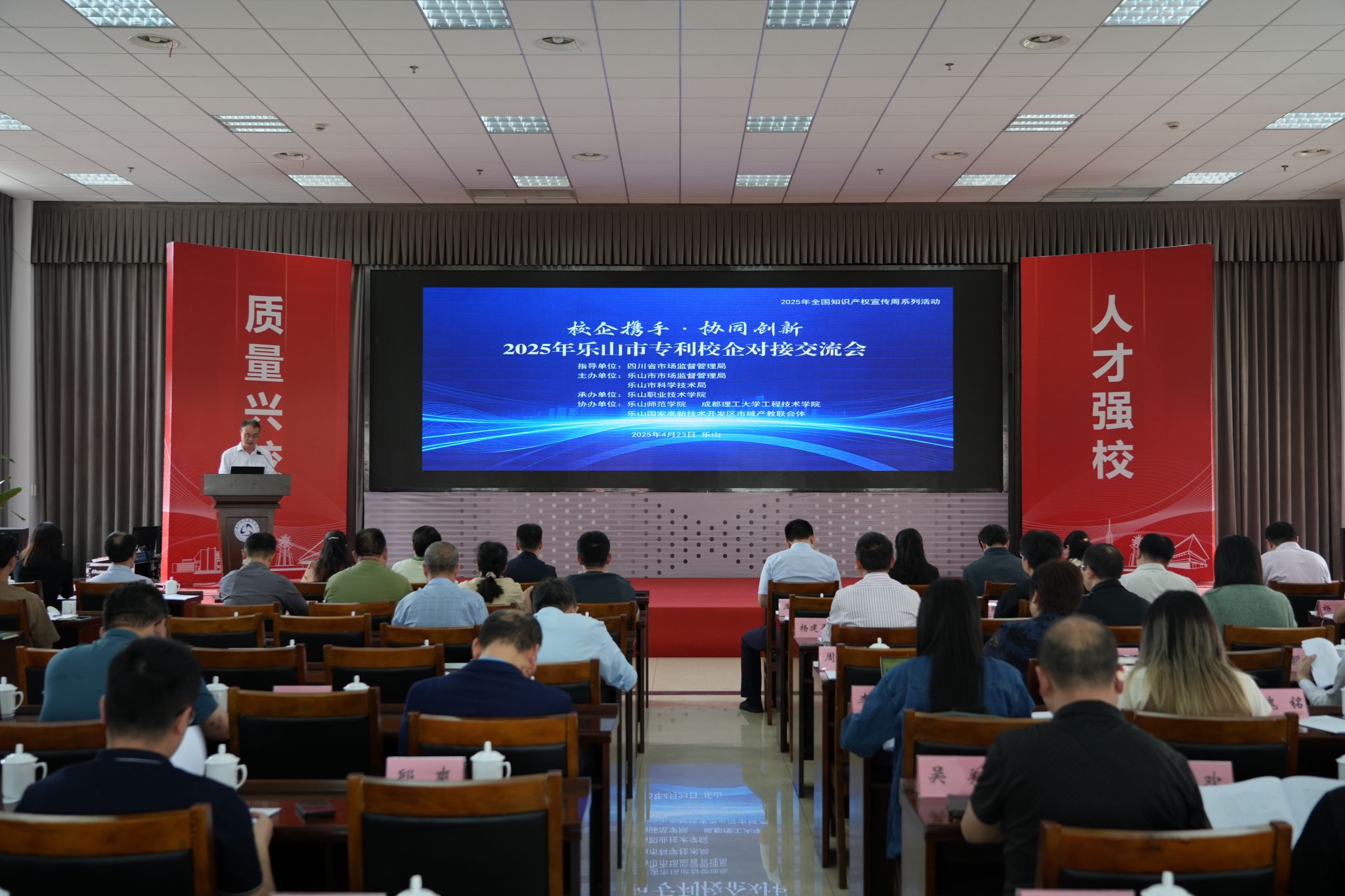 4月23日,由四川省市场监督管理局指导,乐山市市场监督管理局、乐山市科学技术局主办,乐山职业技术学院承办、乐山国家高新技术产业开发区产教联合体协办的 “校企携手・协同创新” 乐山市知识产权校企对接交流会在乐山职业技术学院顺利举行。此次活动作为2025年全国知识产权宣传周系列活动的重要组成部分,旨在搭建校企合作桥梁,推动专利转化运用,助力科技创新与产业升级。来自省、市相关部门领导、高校专家学者、企业代表等150余人参加会议。