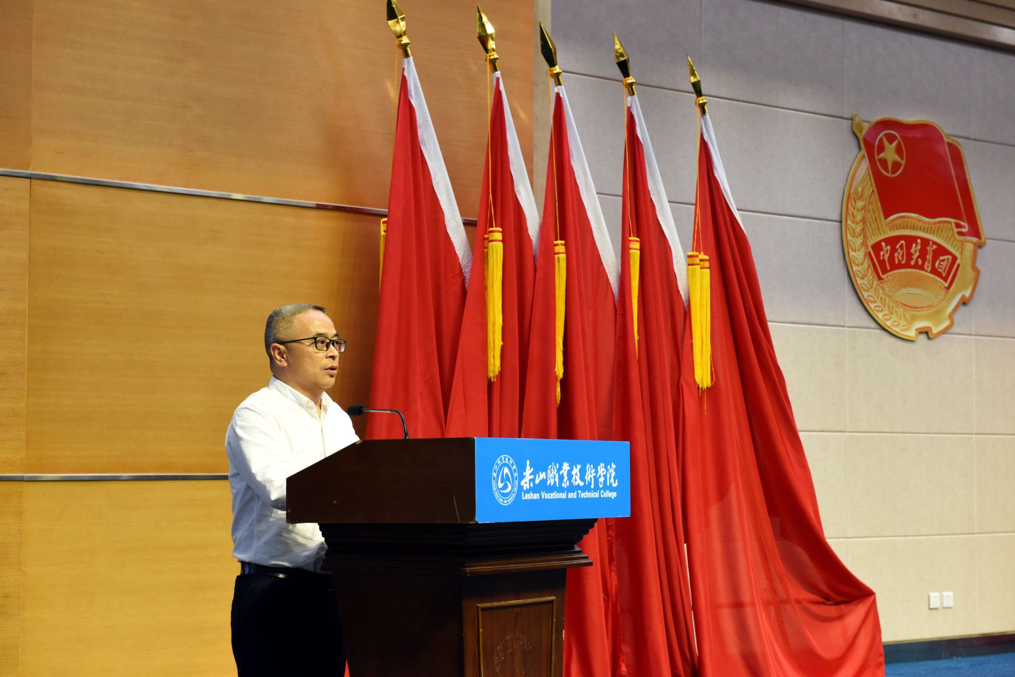 学校党委书记成定彬讲话并上主题团课《不负年华——做挺膺担当的青春奋斗者》。他向获得荣誉的集体和个人表示祝贺,并勉励全校青年弘扬五四精神,坚定理想信念,练就过硬本领。
