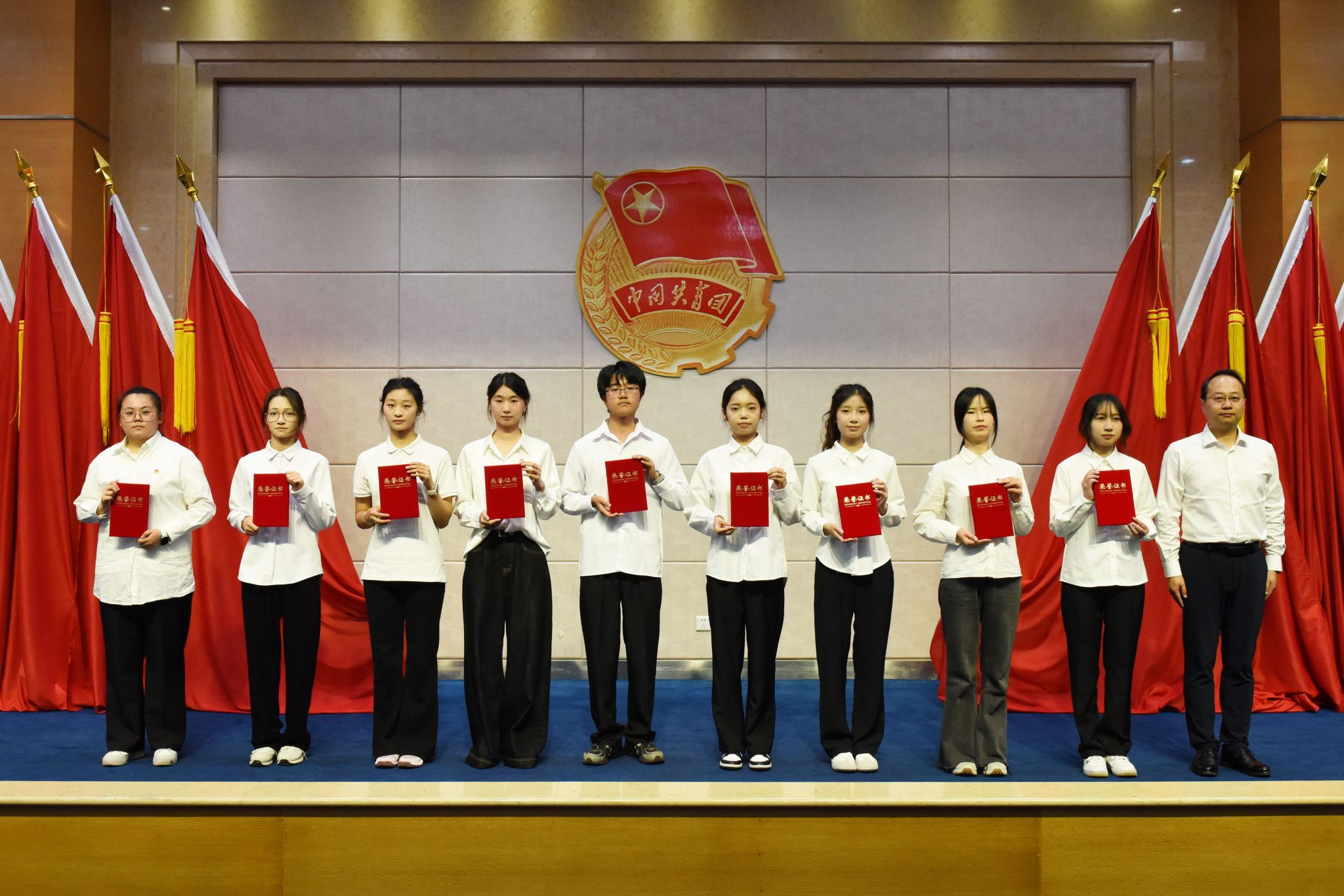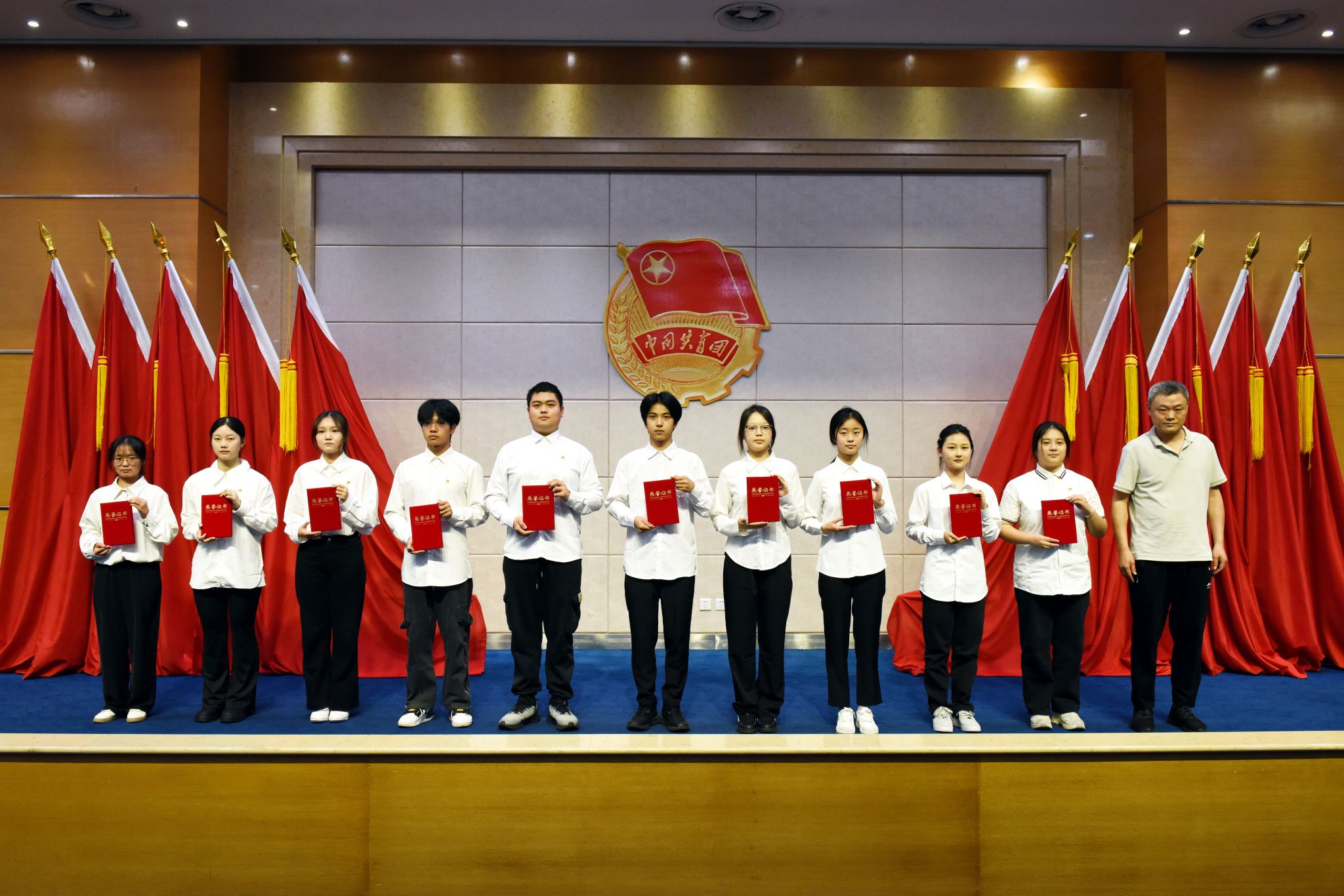 成定彬为“青年五四奖章”获得者颁发奖章和证书