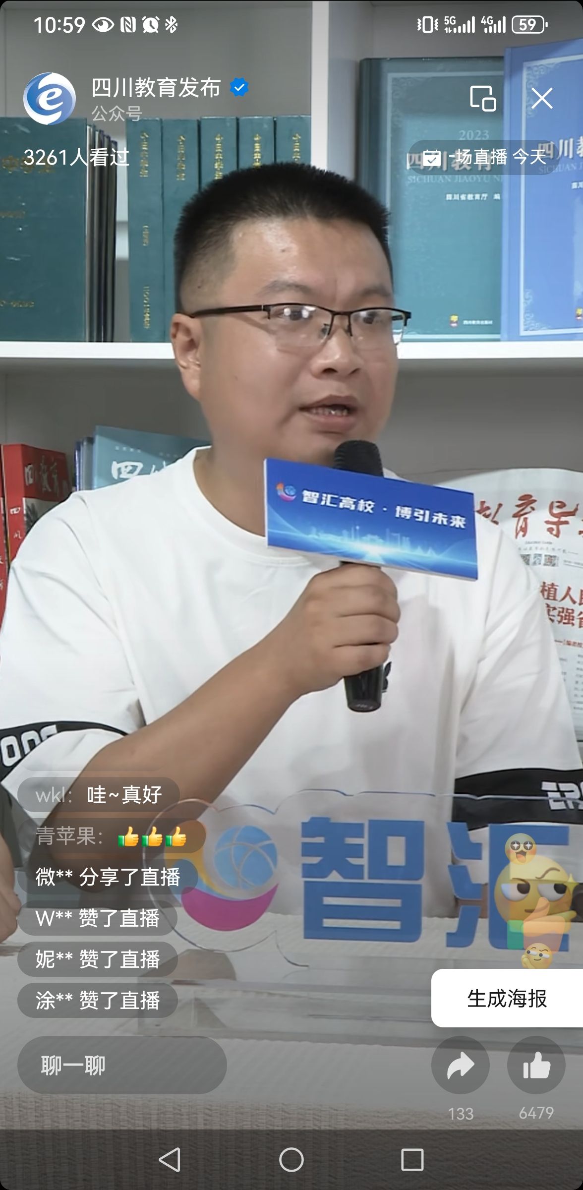 在直播过程中,周啸博士后结合自身经历,向广大观众展示了我校及乐山市地方在吸引人才、培养人才、服务人才、留住人才等方面的优势。他分享了自己到校后的成长经历以及获得的各种支持,详细介绍了我校的人才政策、待遇保障及工作环境。周啸博士后的真实分享,不仅吸引了众多线上观众的关注,更让大家对我校的教学实力和人才发展前景有了更深入的了解。