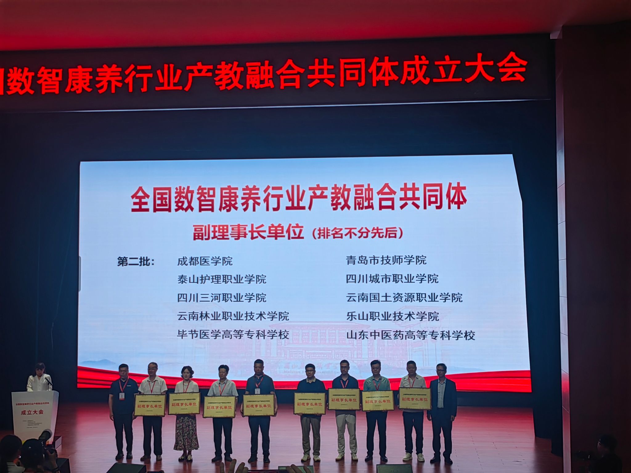 2025年6月12日—13日,全国数智康养行业产教融合共同体成立大会在眉山药科职业学院举行。学校校长刘忠带领教务处、护理康养学院、医学学院相关负责人一行4人参加了共同体成立大会。