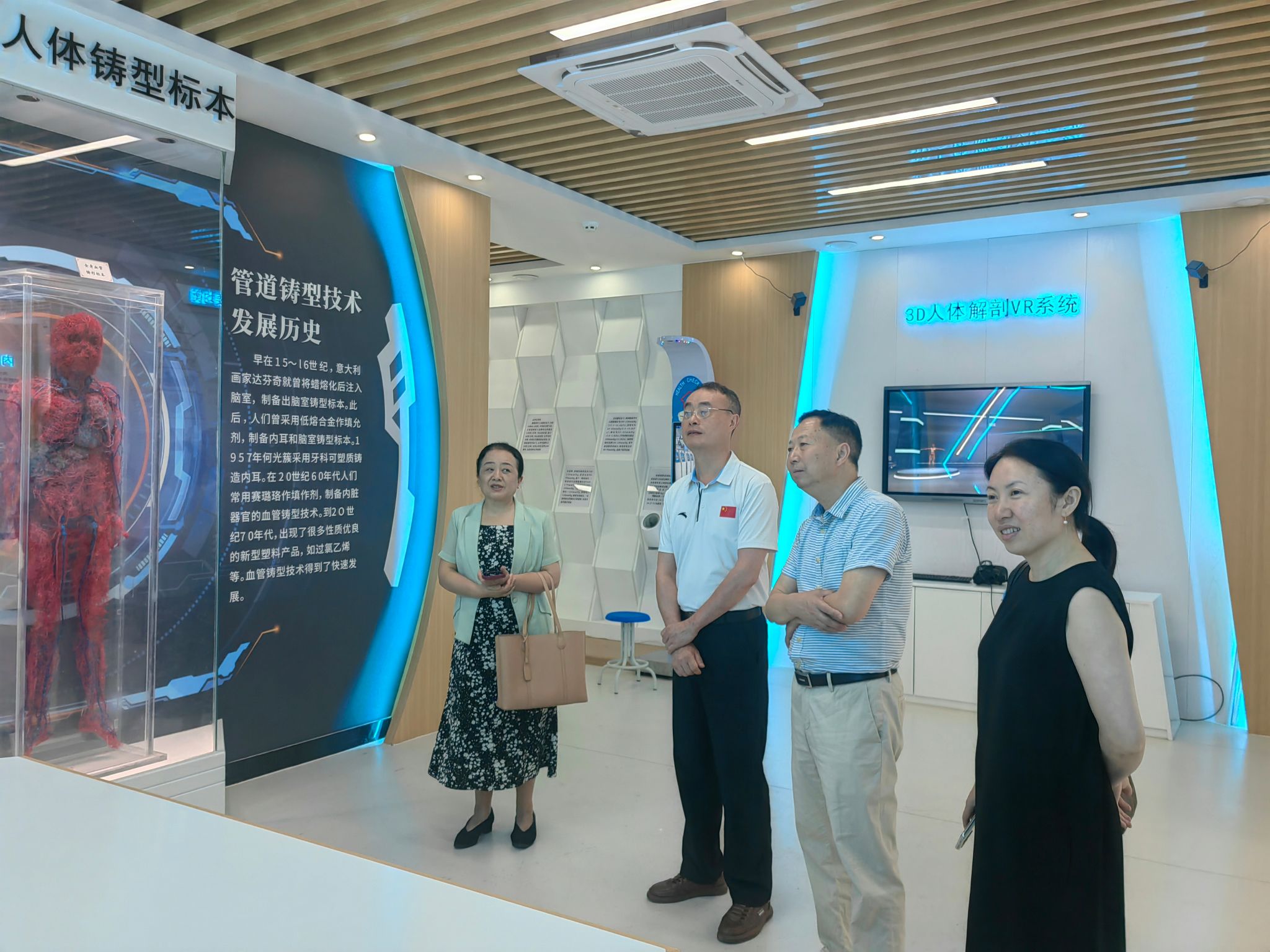 会前,一行人参观了学校中药博物馆、生命科学馆、智慧化健康照护实训中心、思灵机器人x-spa智能健康产教融合实践中心。并与眉山药科职业学院院长曾晓荣、副院长程琳、卢敏及相关部门负责人开展交流座谈,双方就各自在产教融合路径、医学人才培养等方面进行探讨。