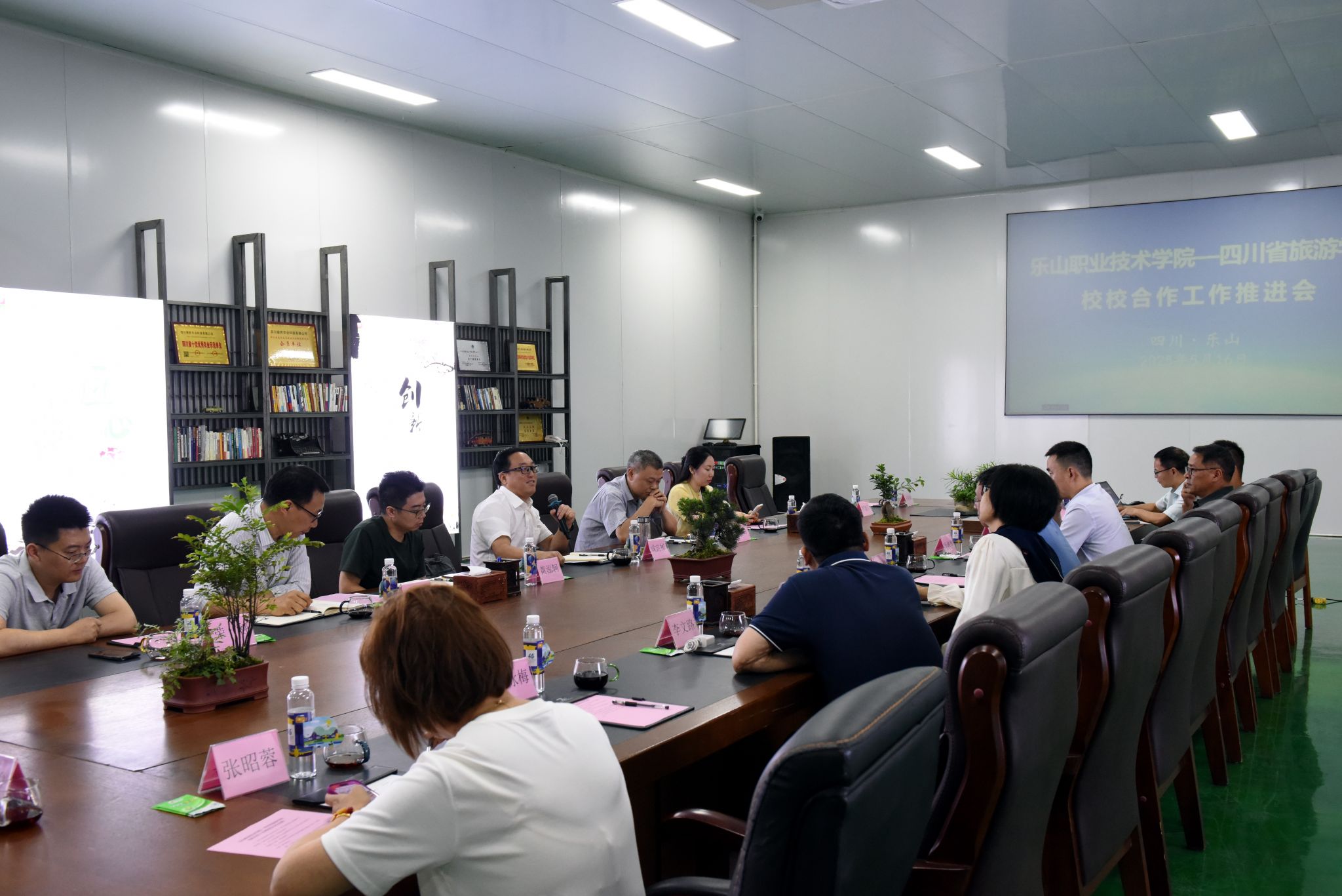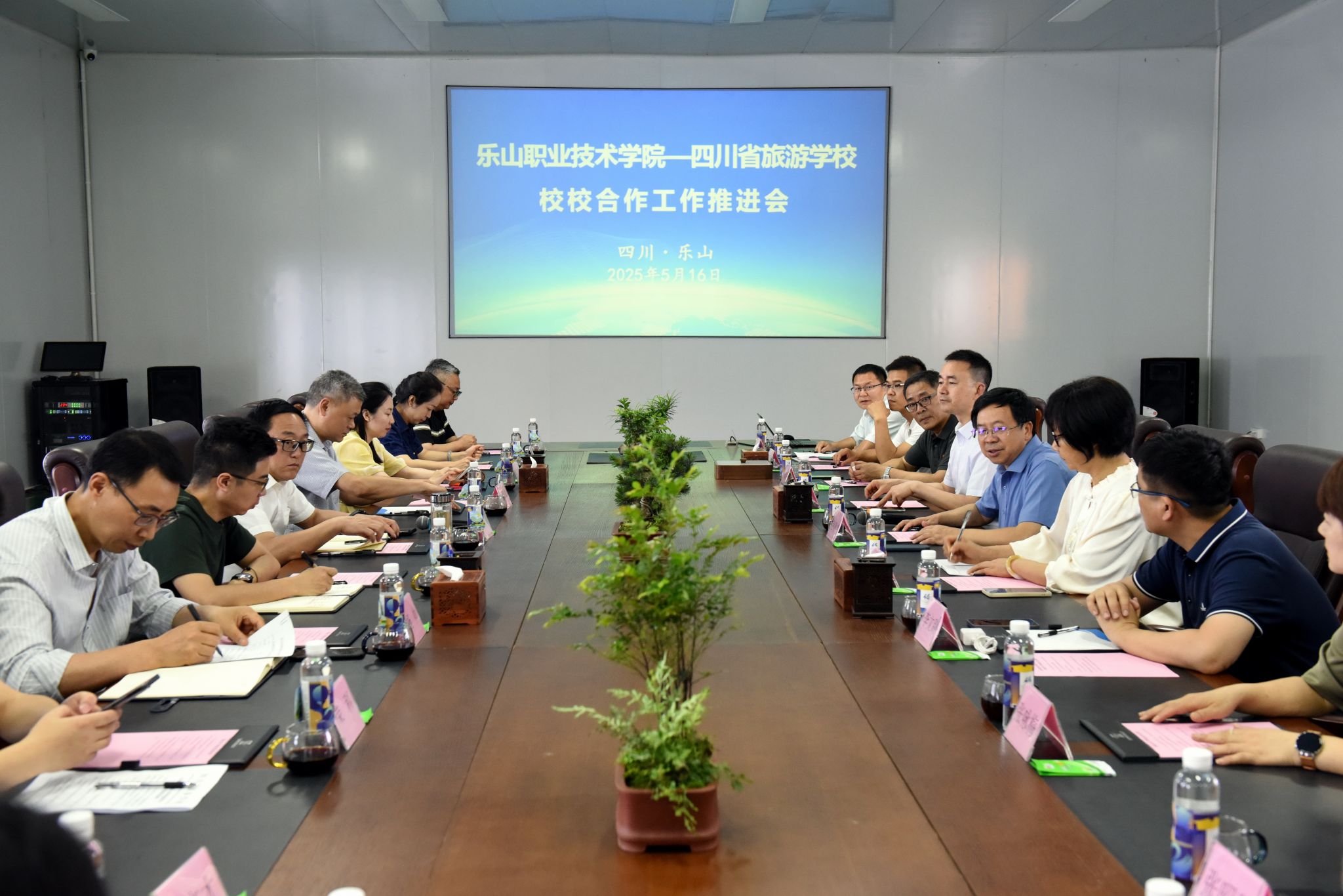 5月16日,乐山职业技术学院与四川省旅游学校在乐山市生活物资集采集配中心会议室举行“校校合作”工作推进会。乐山职院党委书记成定彬,党委委员、纪委书记李昌贵,省旅游学校党委书记、校长赵晓鸿,党委副书记、纪委书记祝红文,党委委员、副校长吴越强出席会议,两校相关部门和二级学院负责人和相关工作人员参加会议。