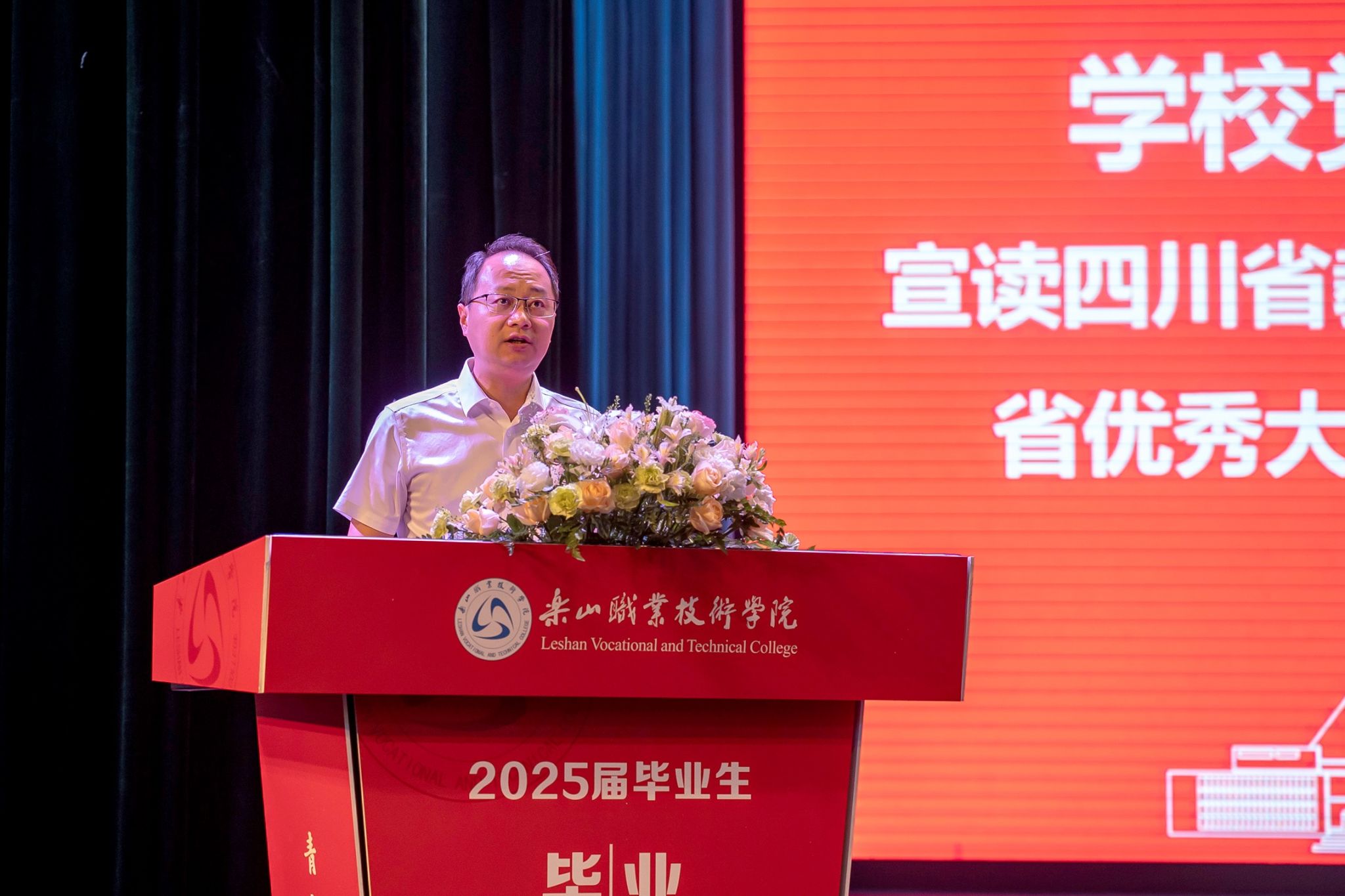 2025年6月29日上午,学校2025届毕业生“青江逐梦·匠心启航”毕业典礼在校礼堂举行,学校领导成定彬、刘忠、张佳、李昌贵、张学河、封家福、周芹出席,相关部门、二级学院班子成员、毕业班辅导员和毕业生代表参加。典礼由学校党委委员、副校长张学河主持。