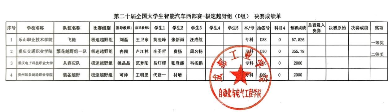 7月18日至21日,第二十届全国大学生智能汽车竞赛西部赛区比赛在成都工业学院隆重举行。我校智能制造学院派出由陈景琪、刘磊、谈振等教师指导的三支参赛队伍,分别参加缩微电磁组、极速越野组和缩微光电组三个赛项的角逐。经过预赛、决赛两轮激烈比拼,最终我院缩微电磁组和极速越野组双双斩获专科组一等奖(第一名),并在本专科混合排名中表现亮眼——缩微电磁组位列总排名第8(共61支队伍),极速越野组位列总排名第13(共43支队伍)。
