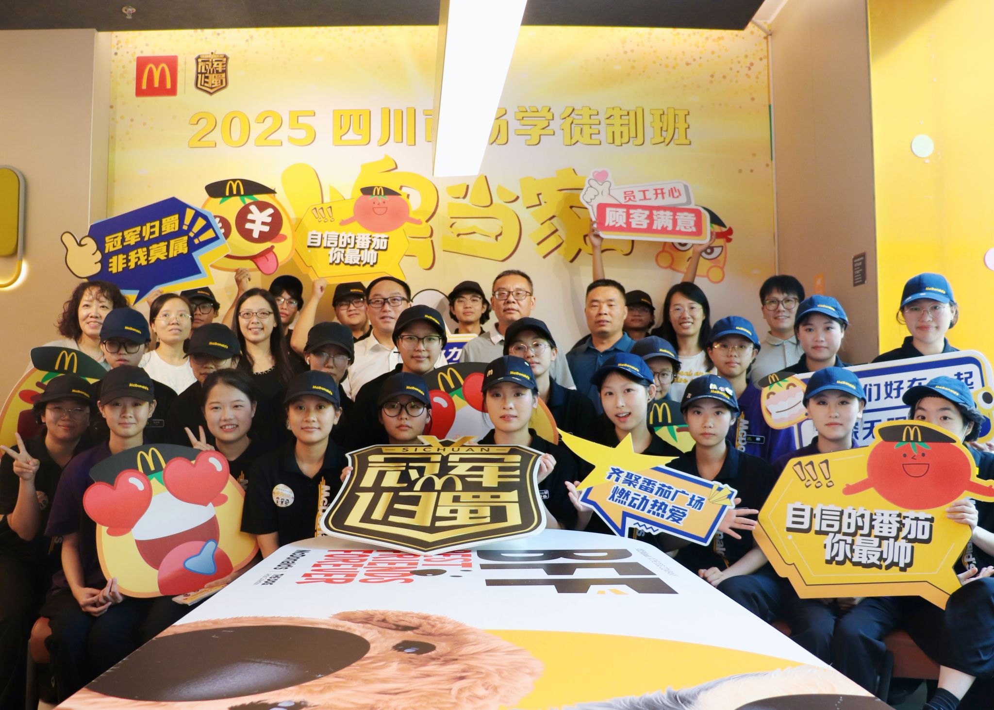 上午11时,校企双方在成都百扬大厦举行现代学徒制班交流座谈会。金拱门营运总监韩光明、人力资源部经理陈祥等企业代表出席。会上,成定彬肯定双方八年合作成果,校企双方围绕“麦苗班”人才培养、学生实习进展、未来合作方向展开深入交流,并就课程体系升级、数字化创新合作等方向达成共识。会后,成定彬一行参与“小鬼当家”实践活动总结会,肯定学生在门店运营中的表现。他对学生提出期许,希望他们珍惜实践机会,锤炼本领、提升素养,未来成为行业骨干,并向全程指导的企业导师表达诚挚感谢。