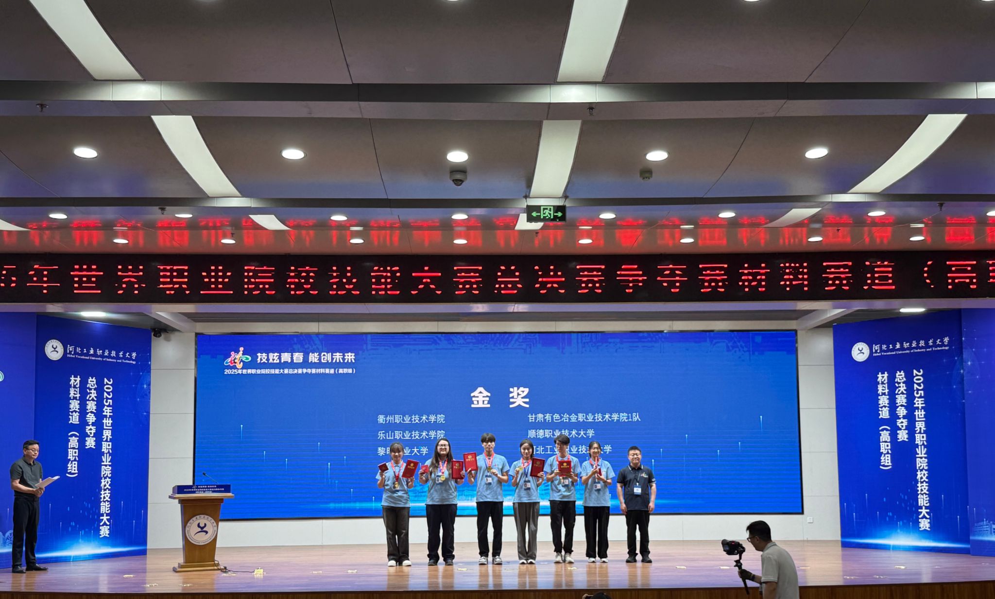 8 月 26 日至 27 日,2025 年世界职业院校技能大赛总决赛材料赛道争夺赛在河北职业技术大学激烈开赛。乐山职业技术学院新能源与材料学院的师生代表,满怀激情地参与了此次高规格赛事,并凭借卓越表现最终荣获金奖。