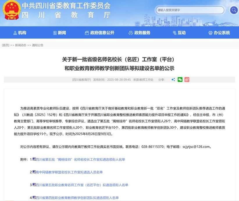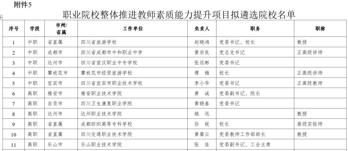 近日,四川省教育厅公布了新一批省级名师名校长(名匠)工作室(平台)、职业教育教师教学创新团队和职业院校整校推进教师素质能力提升项目建设名单,我校同时入选“四川省第四批职业教育教师创新团队”和“整校推进教师素质能力提升项目”建设单位,实现教师队伍省级标志性成果新突破。