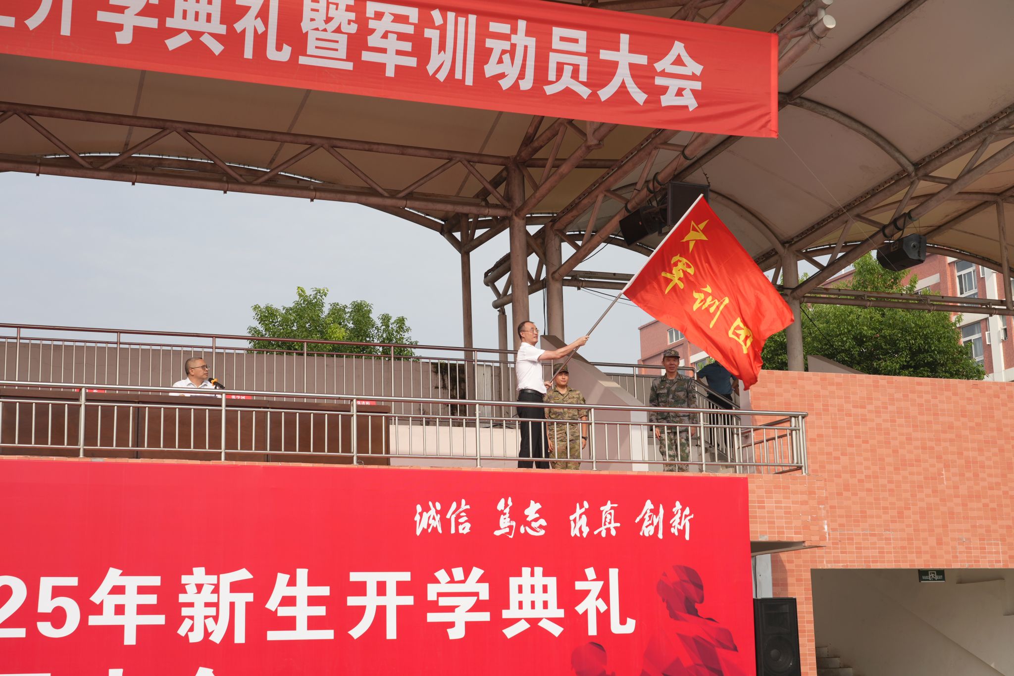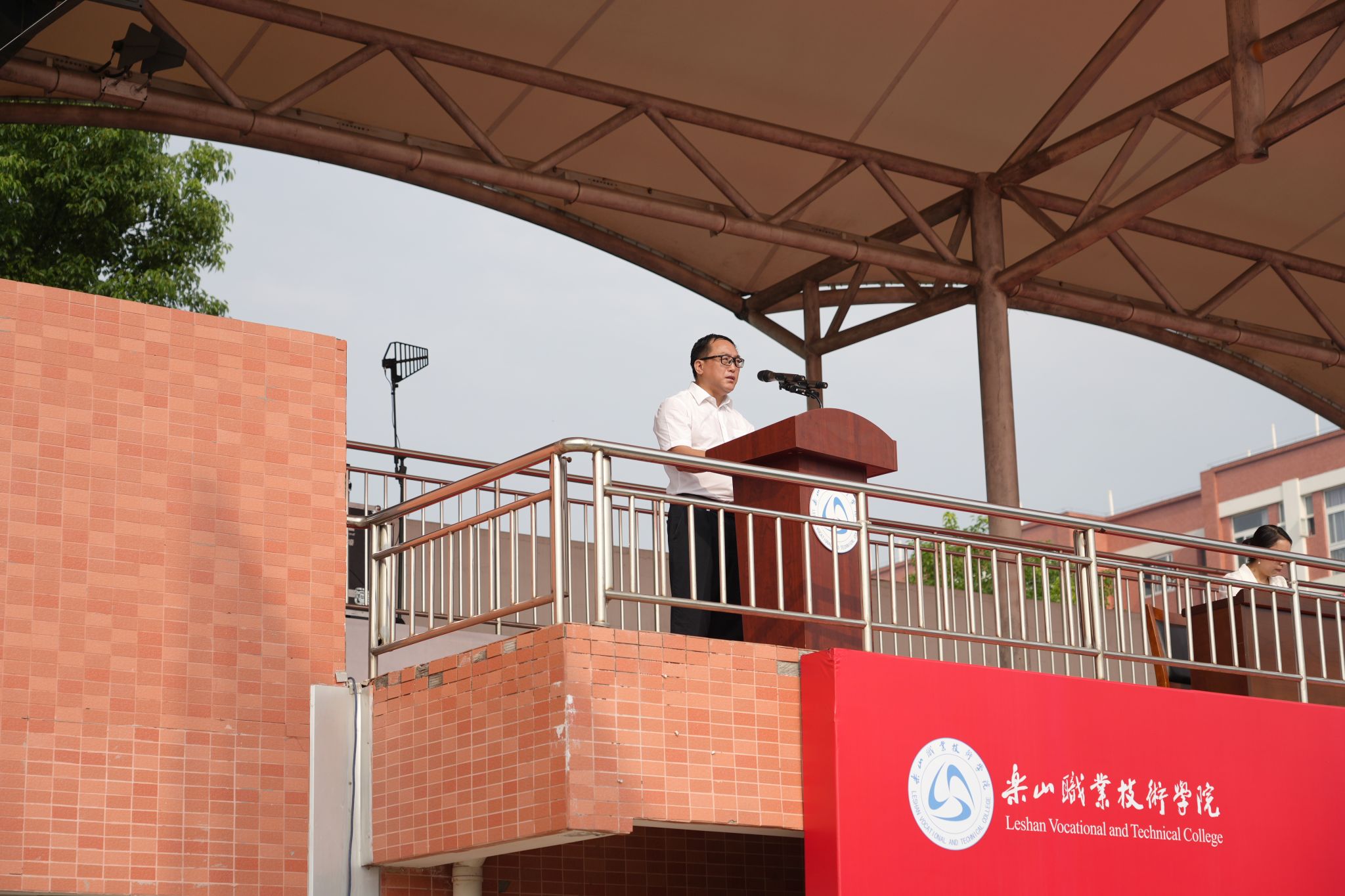 校长刘忠为军训团授旗,并代表学校全体师生员工,对2025级新同学的到来表示最热烈的欢迎和最诚挚的祝贺。希望同学们在科学与知识的海洋中,培养自由之思想、独立之思考;在技术与技能的训练中,锤炼工匠之精神、职业之操守;在学习和生活的过程中,追求文明之精神、强健之体魄。时刻将校训铭记于心,以诚信为本、笃志前行、求真务实、勇于创新,努力成为一名合格的乐山职业技术学院学生。