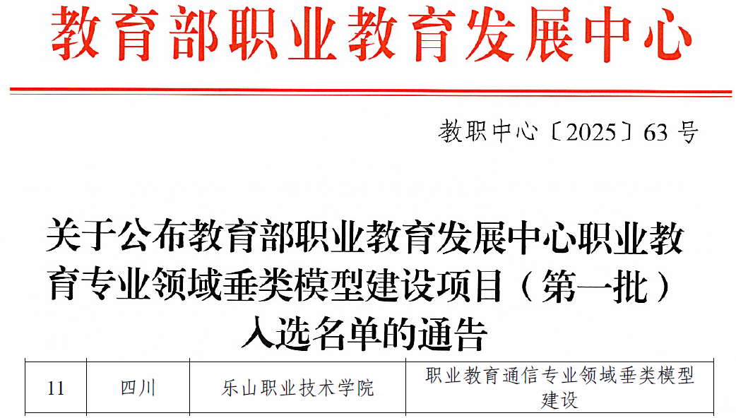 热烈祝贺!由乐山职业技术学院人工智能学院牵头申报的“职业教育通信专业领域垂类模型建设”项目,成功入选教育部职业教育发展中心职业教育专业领域垂类模型建设项目(第一批)!