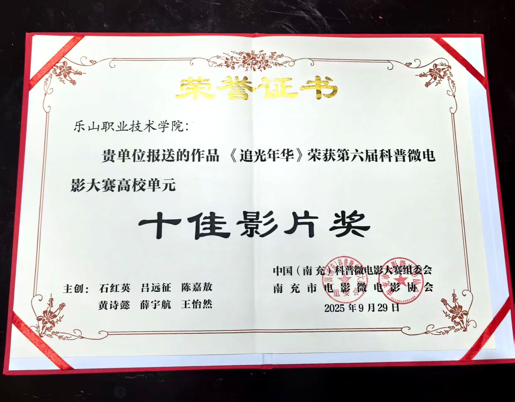 近日,由马克思主义学院教师石红英、吕远征、陈嘉敖和学生黄诗懿、薛宇航、王怡然共同创作的微电影作品《追光年华》,荣获第六届中国(南充)科普微电影大赛高校单元“十佳影片奖。