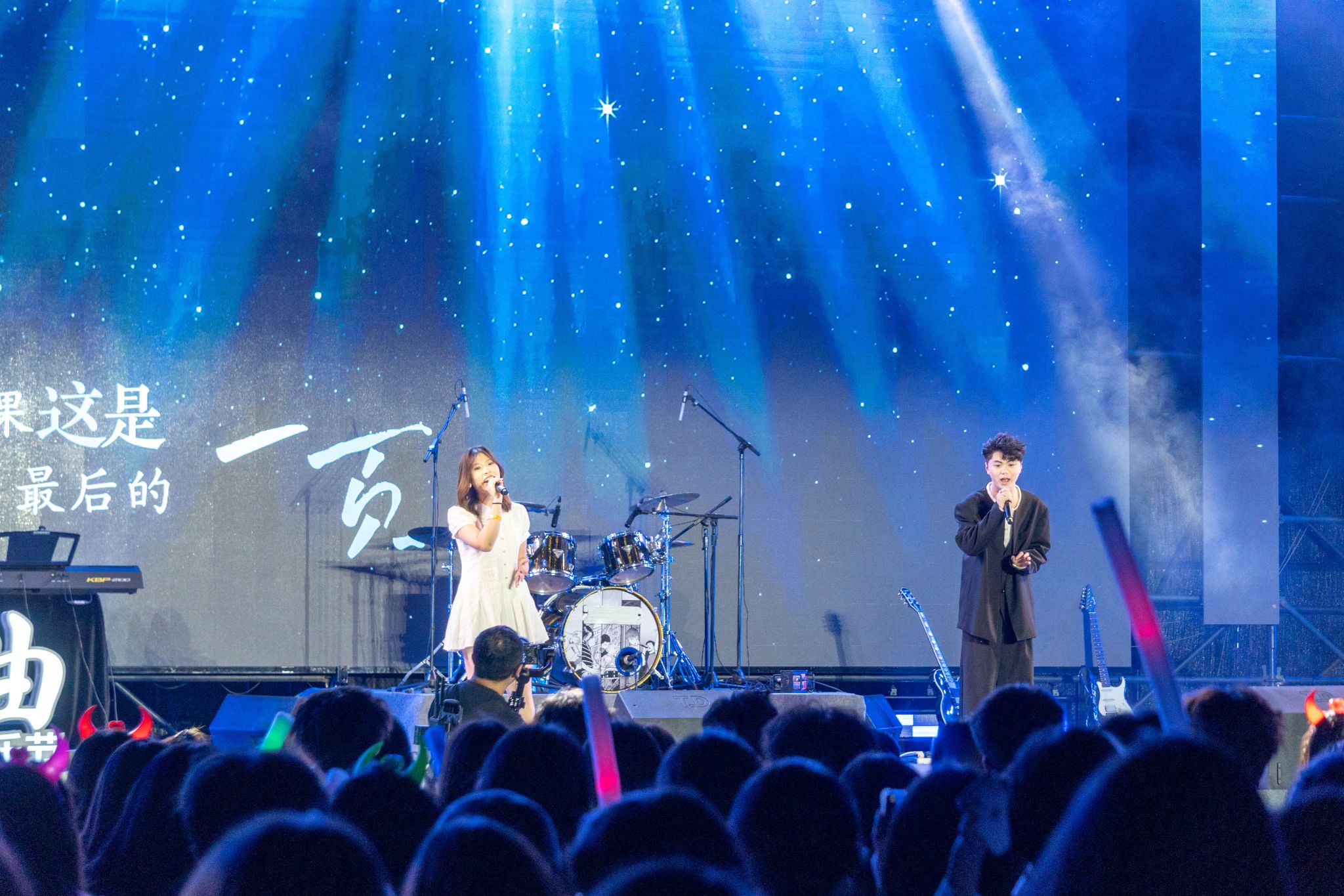 本次音乐节中,师生同台成为一大亮点。段佳敏、刘倩老师与学生在《七里香》的旋律中深情对唱,张艳琳老师与学生共同演绎《你曾是少年》,将音乐课堂延伸至舞台。这些表演不仅彰显了教师团队的专业素养,更凸显了学校“以美育人、以文化人”的教育理念。现场观众感慨:“学生乐队的专业水准令人惊叹,这背后是学校对美育的重视与投入。”
