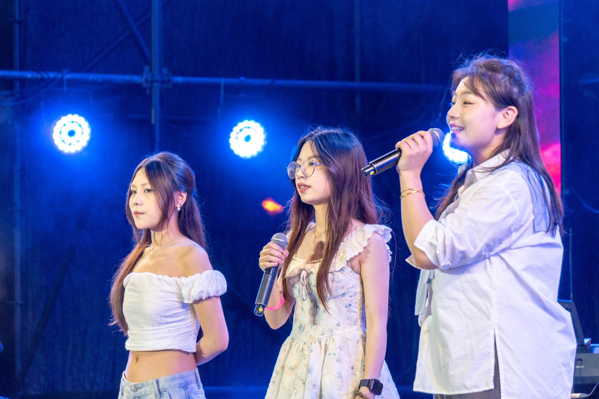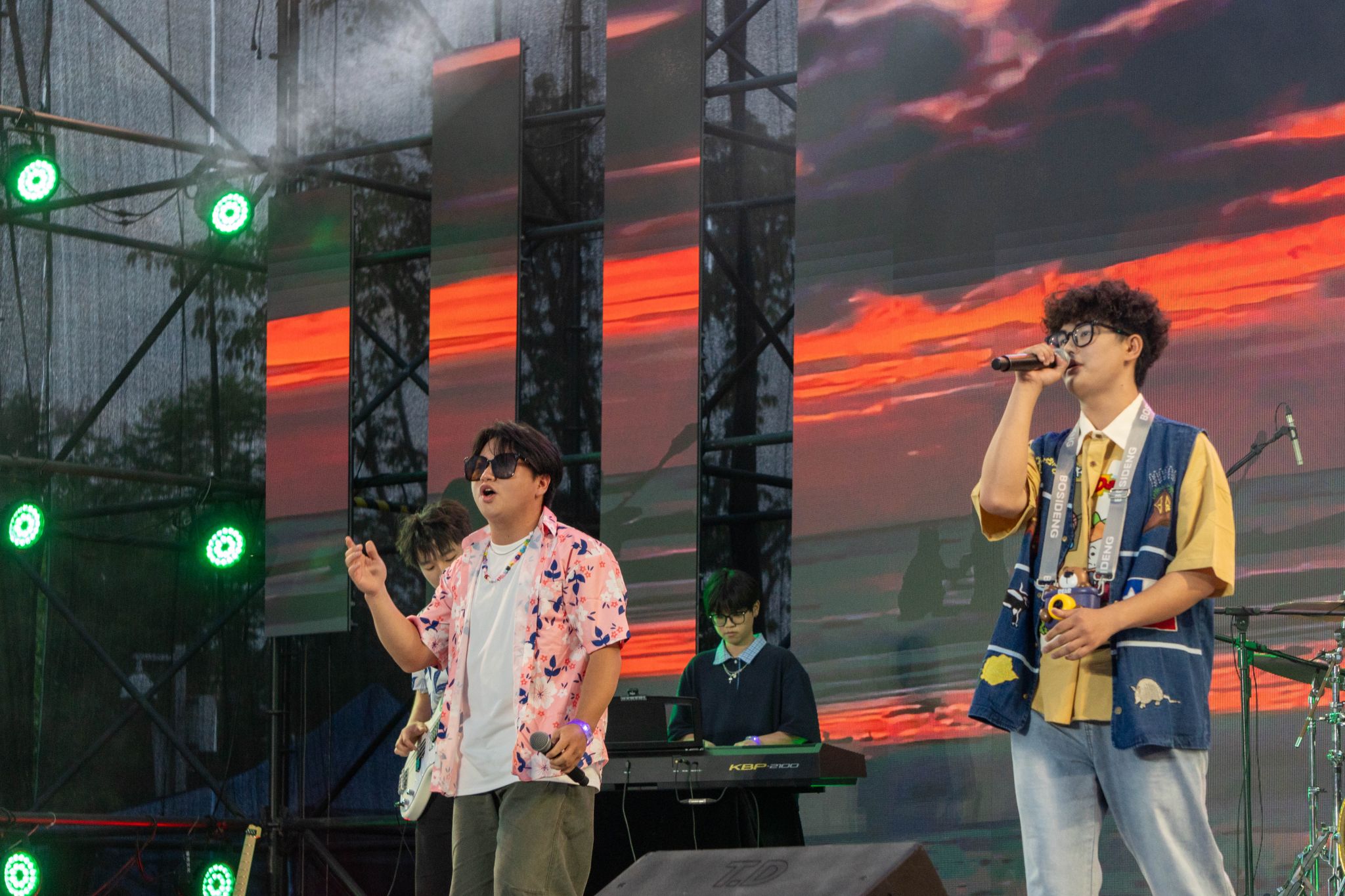 音乐节上,由在校学生组成的乐队成为舞台焦点。以曲目《鲜花》开场,吉他与鼓点交织出夏日的蓬勃生机;《想去海边》用清亮嗓音勾勒出青春的自由与向往;《爱的飞行日记》,唱出对校园生活的眷恋。《月牙湾》大胆创新,将传统民乐二胡融入其中,尤为亮眼,李恩泽独挑大梁的《逆战》以激昂旋律点燃全场,乐队默契配合,将摇滚精神演绎得淋漓尽致。每一支乐队从曲目编排到现场演绎,均展现出扎实的音乐功底与独特的艺术风格,成为音乐节最动人的风景线。