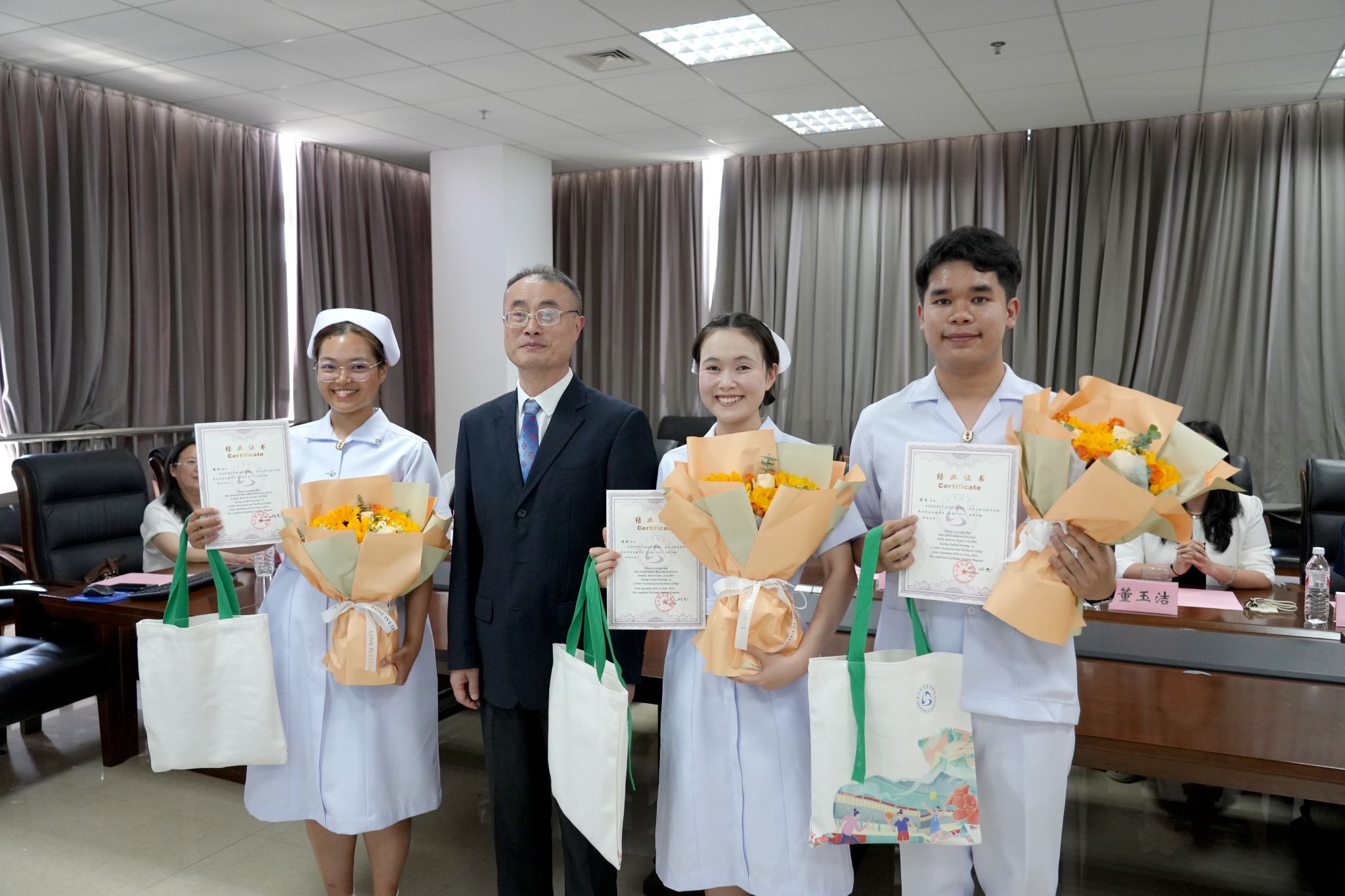 典礼上,刘忠校长为5名泰国交换生一一颁发结业证书。这纸证书不仅承载着他们一年的勤学硕果,更象征着中泰教育交流互鉴结出的丰硕果实。