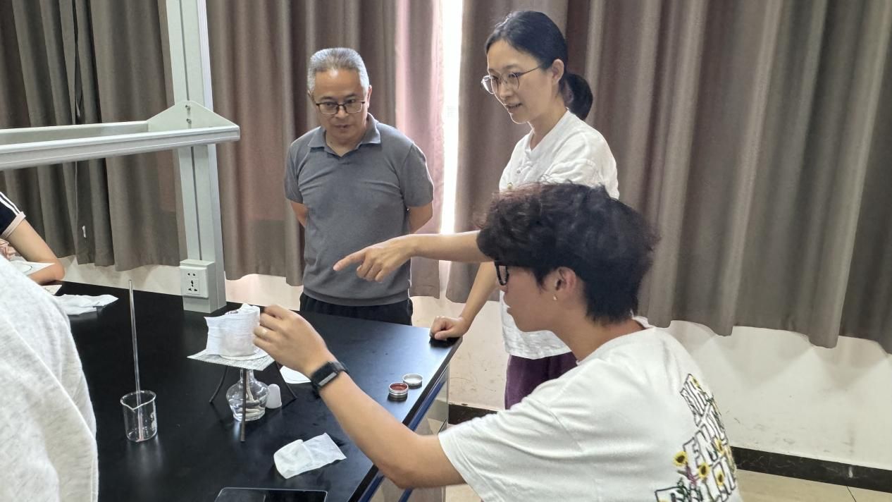 实践环节中,同学们分组协作,在张校长和中医专业教师黄斯慧的指导下,精准称量紫草油、融化蜂蜡、调配乳香与没药粉,最终完成紫草膏的灌模定型。全程沉浸式的操作让许多同学自然进入“心流状态”,手工乐趣与团队合作有效消解了学业压力。活动还巧妙融入“五感疗法”,通过药材触感、草本香气与膏体成色的感官体验,多维度激发积极情绪,显著提升了参与者的心理舒适度。