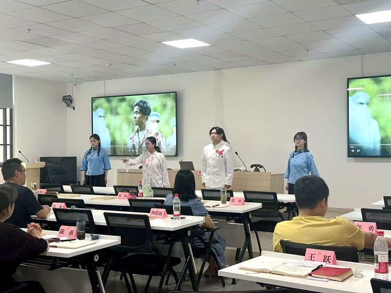 刘倩以“党课的授课技巧”为主题,从引领式、体验式、互动式三个方面展开授课,全过程鼓励学员积极参与,提高学习的主动性和实效性,促进思想碰撞和观点交流。讲座尾声,刘倩带领学院宣讲队,师生共同展开情景宣讲《百年风华 青春不老》,升华主题。