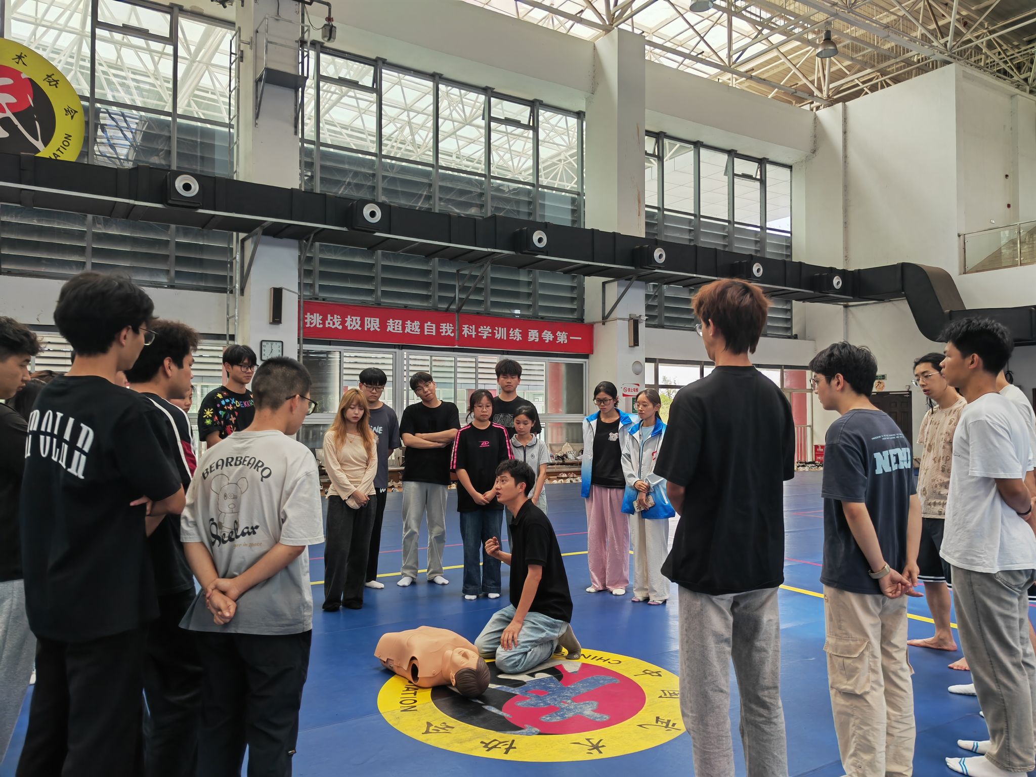 为进一步普及推广应急救护知识和现场处置技能,提高面对突发事件的自救和互救能力。6月4日下午,后勤处、学生工作部、医学学院在体育馆二楼联合开展应急救护(心肺复苏)技能培训,吸引了180余名师生参与。
