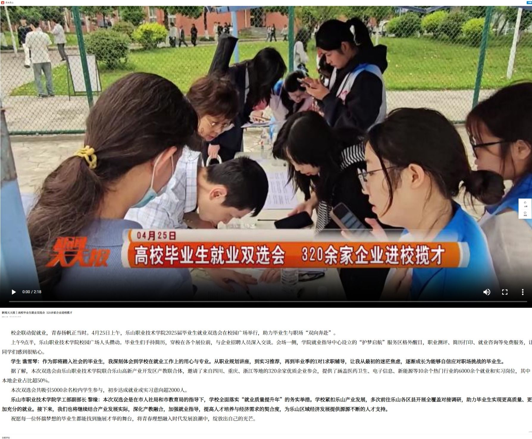 乐山电视台新闻联播:乐山职院双选会 超2000人达成意向(视频)