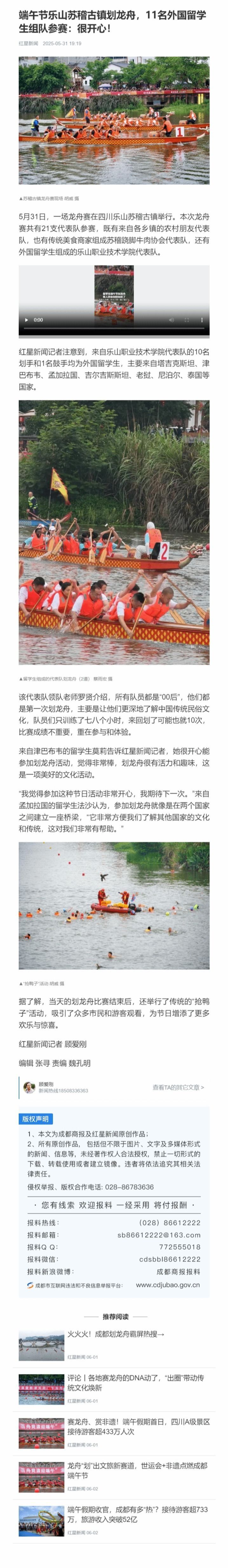 红星新闻:端午节乐山苏稽古镇划龙舟,11名外国留学生组队参赛:很开心!-尊龙凯时人生就是搏