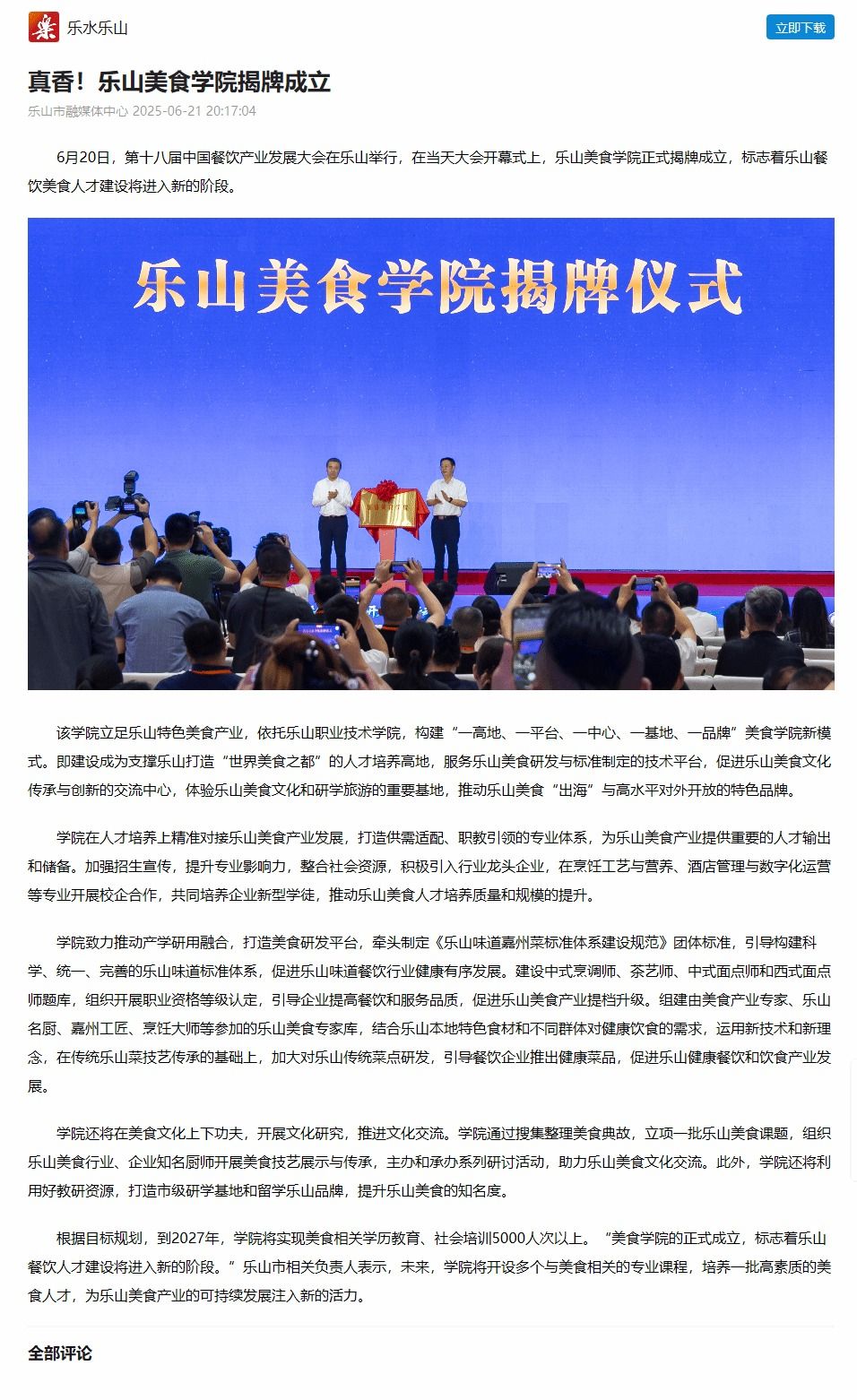 四川职教发布:乐山美食学院成立,开启职业教育赋能美食产业发展新篇章