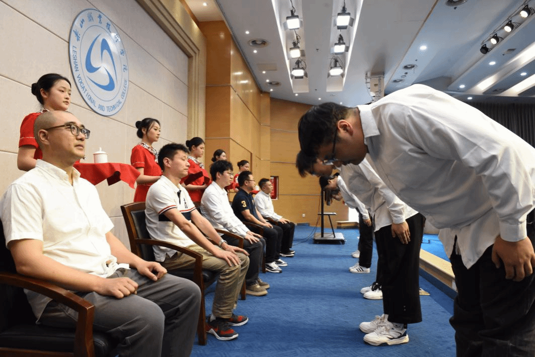 拜师仪式环节,学徒代表向导师行鞠躬礼、敬拜师茶,以传统礼仪表达对师恩的敬意与勤学笃行的决心。现场气氛庄重而温馨,师徒结对场景令人动容。